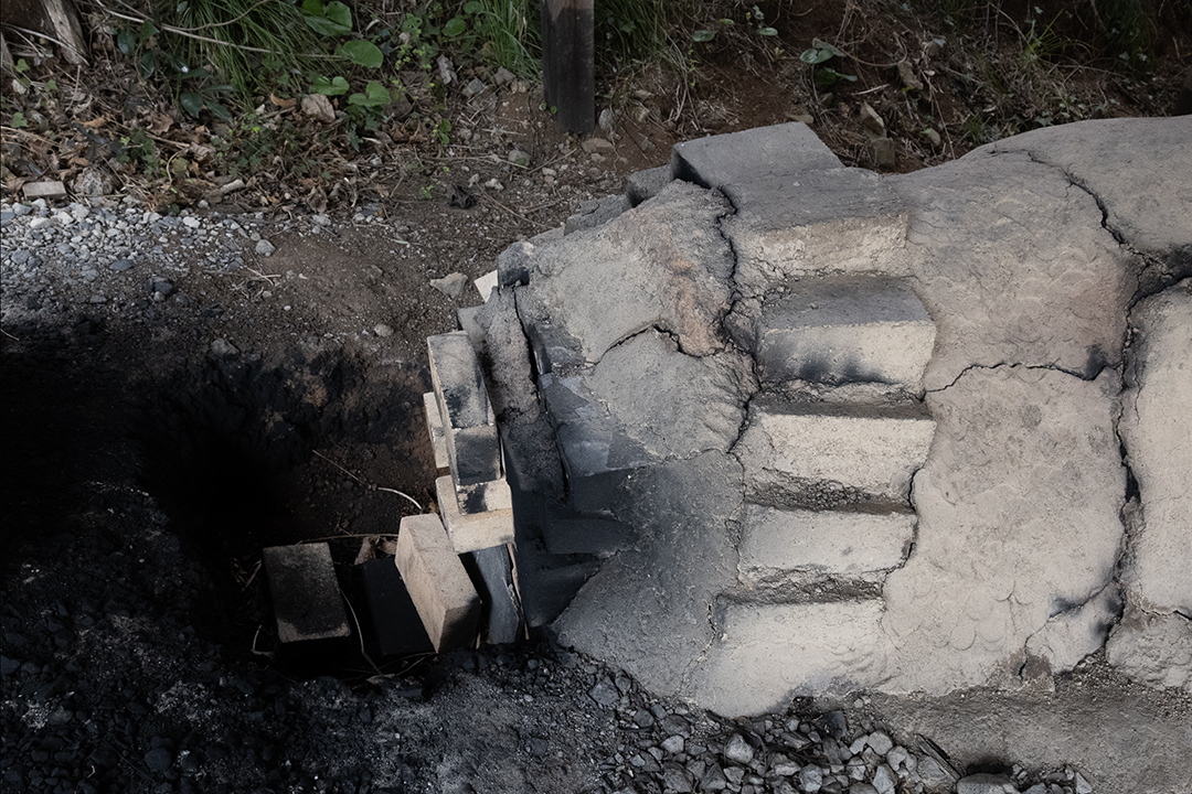 山の斜面を利用して、下から上になだらかに火が上り、最上部で抜けていくという、なんとも原始的なもの。