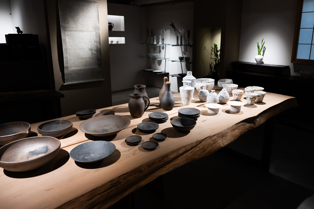 同じ技法を違う素材で表現するお二人が、どのように土と焼きに向き合い造形にしているか、そこに宿るものは何か、を覗くことのできる展示となっています。