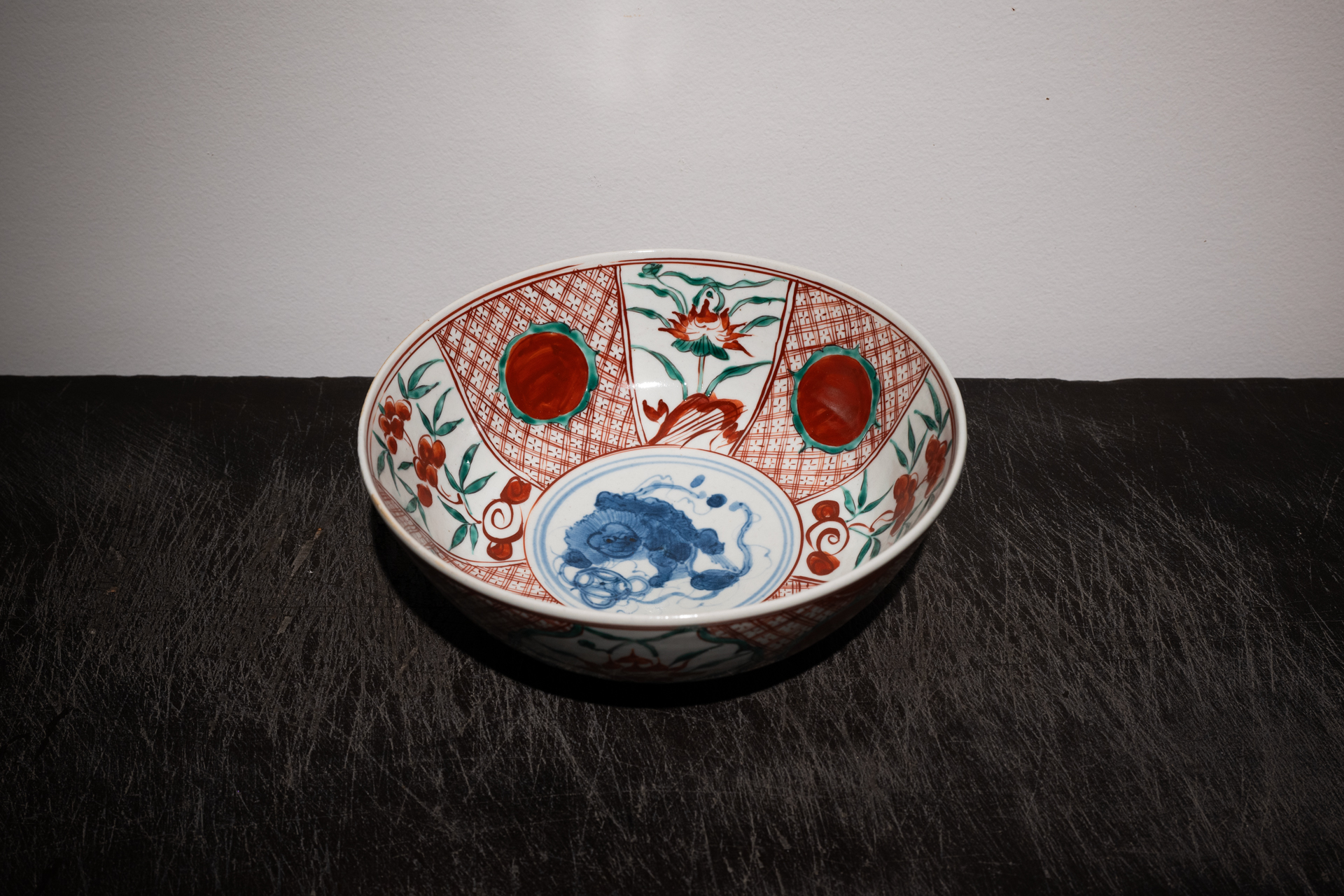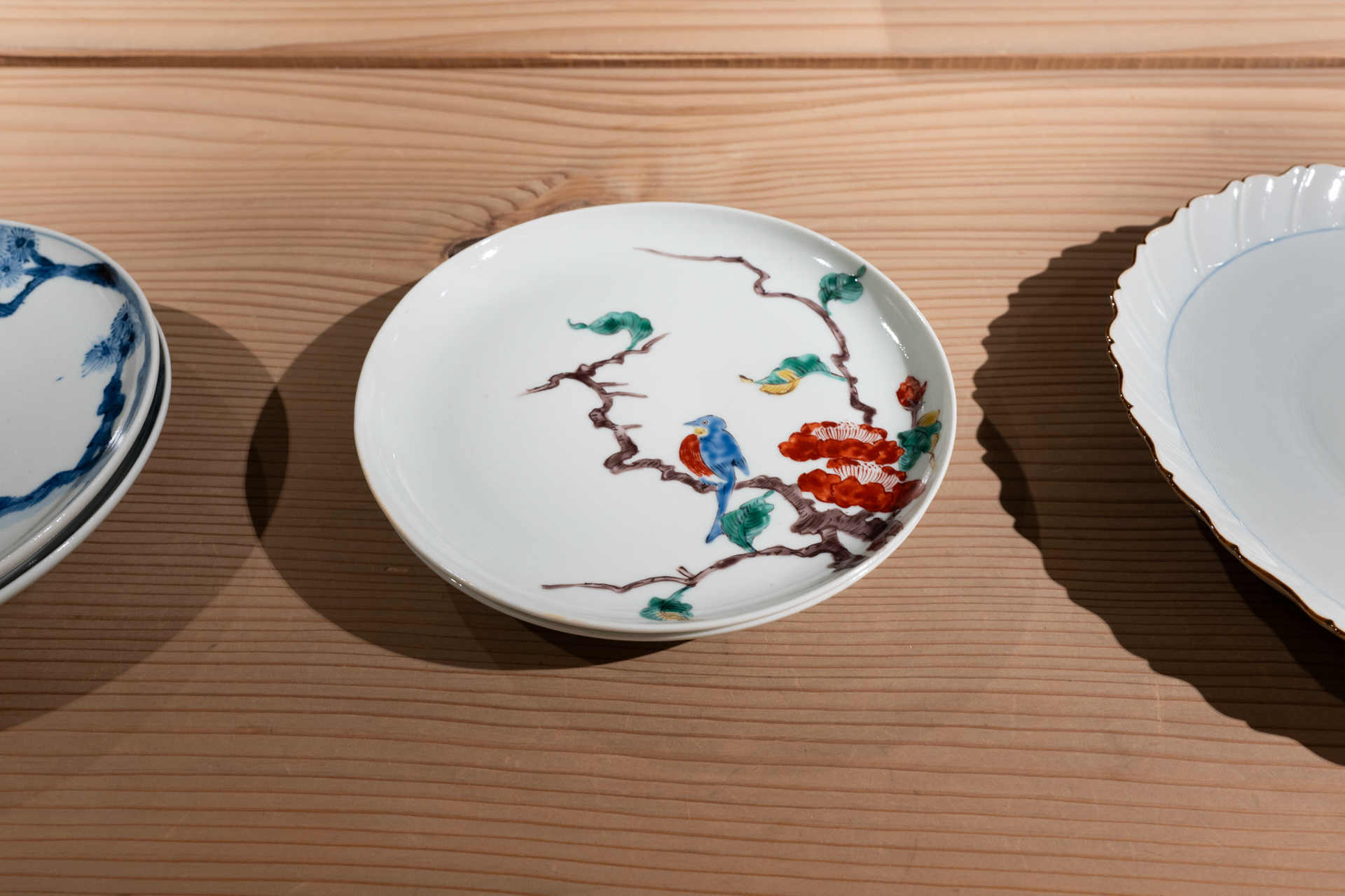 濁りのある有田特有の白地に、深みのある抑制の効いた色使い、